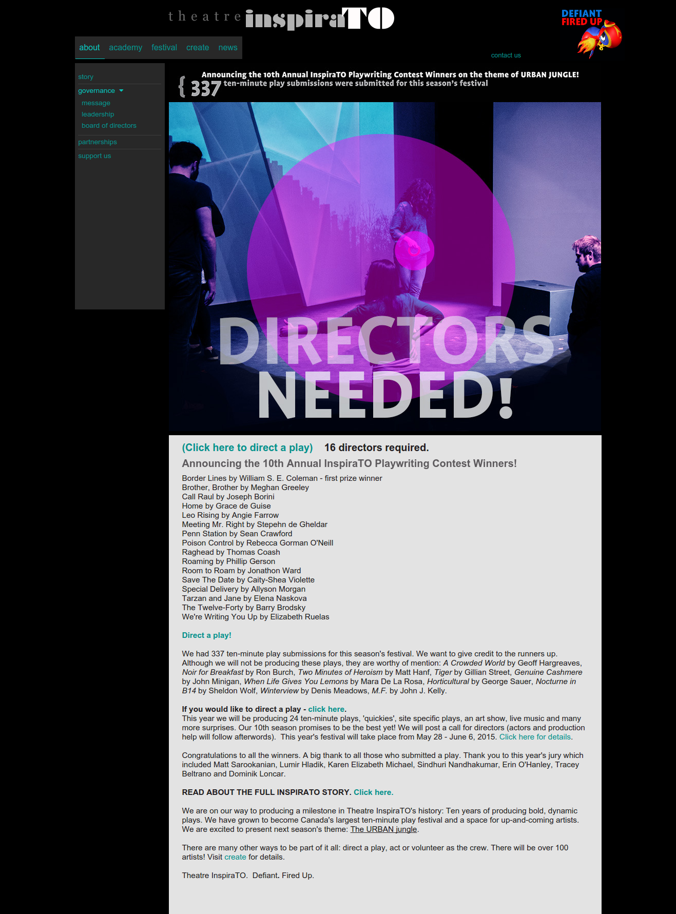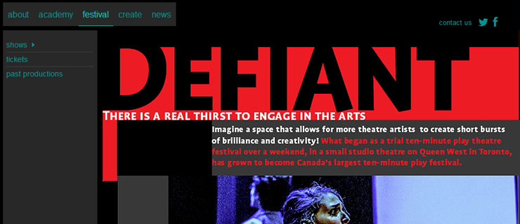 Website and CMS for Toronto 5-minute Play festival. Custom content manager for publishing pages, managing video and image galleries and a back-end system for handling user-submitted documents.