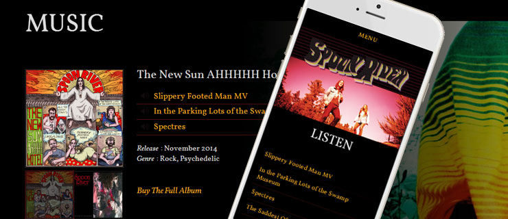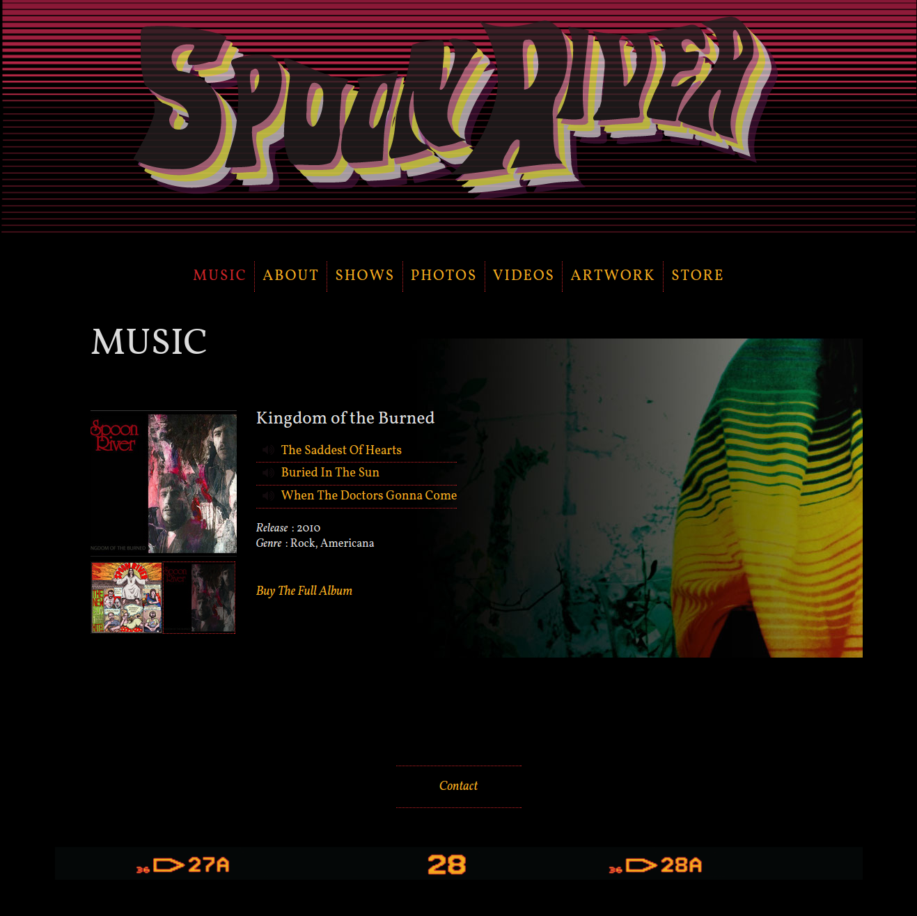Website redesign and rebuild for the rock band Spoon River: Ruby on Rails back-end with custom content management system for posting gigs, artwork, &tc. Additional content is synched and fed in from Facebook, Instagram and music streaming from SoundCloud.